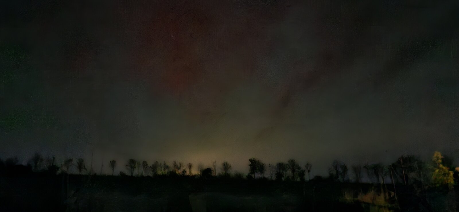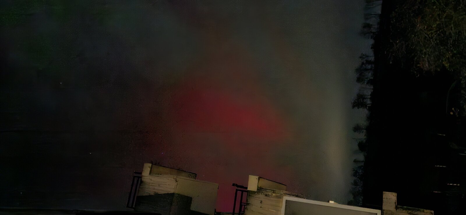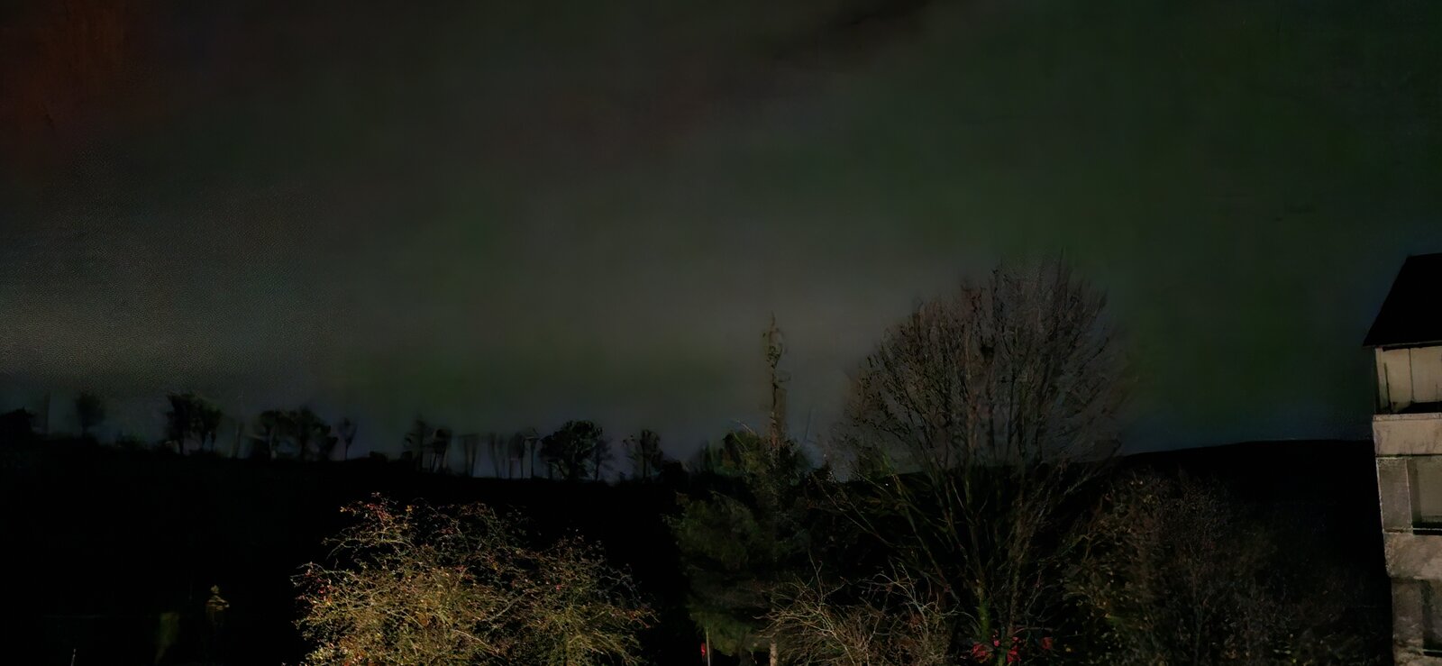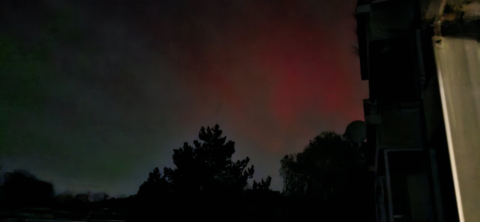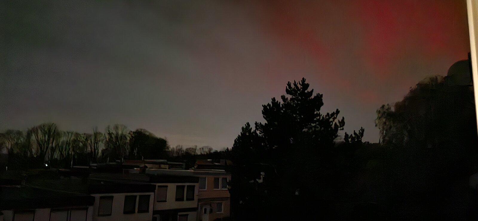 I often check the website for the aurora borealis. There was a strong display of the colors there. On our balcony, I could only see it with my phone. It was almost behind our house. When I went downstairs to take a picture in front of our house, the airora was almost gone.