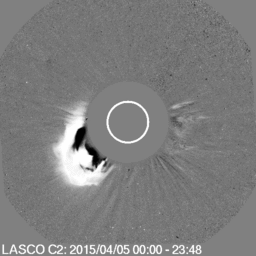 Images: Coronagraph imagery from SOHO/LASCO C2 (left) and C3 (right) showing the coronal mass ejection associated with the filament eruption.