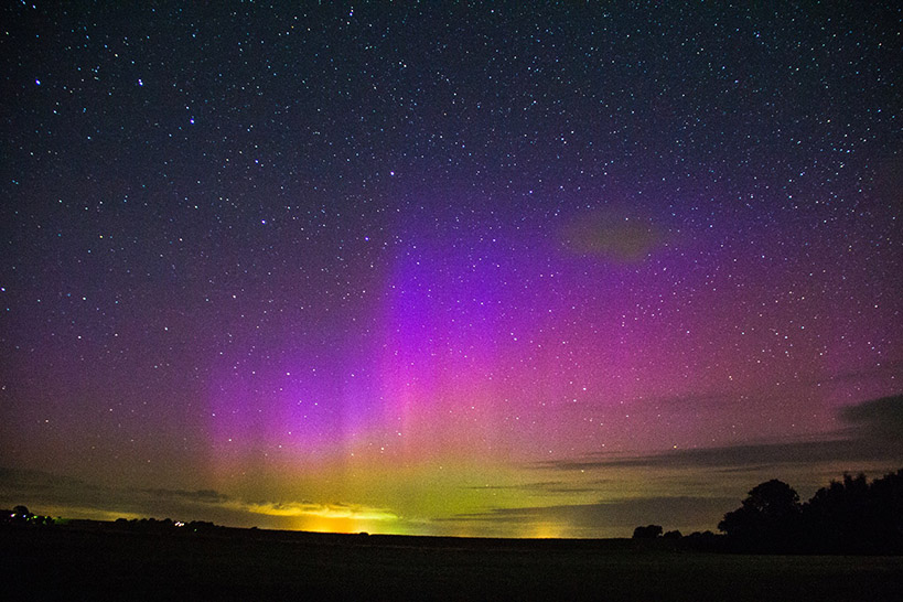 Vivid auroral displays have filled the skies at many high latitude locations during the past 24 hours and even from middle latitude locations we have heard reports of visible aurora. This was due to an unforeseen powerful coronal hole solar wind stream which sparked a moderate G2 geomagnetic storm. Keep on reading for a selection of images made during the past 24 hours.