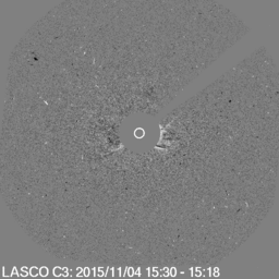 A rather faint coronal mass ejection emerged following the solar flare. Most of the ejecta looks to be heading southwest of the ecliptic but there is an earth-directed component. CACtus only gives us a speed of about 500km/s for this coronal mass ejection which isn't much faster than the ambient solar wind. We do not expect a major impact but high latitude sky watchers should be alert for aurora when the plasma cloud arrives. Impact time for this coronal mass ejection considering the speed of this coronal mass ejection should be in the evening (UTC timezone) hours of Saturday 7 November 2015 which we calculated by using the Drag-Based Model. Minor G1 geomagnetic storming conditions are expected at most.