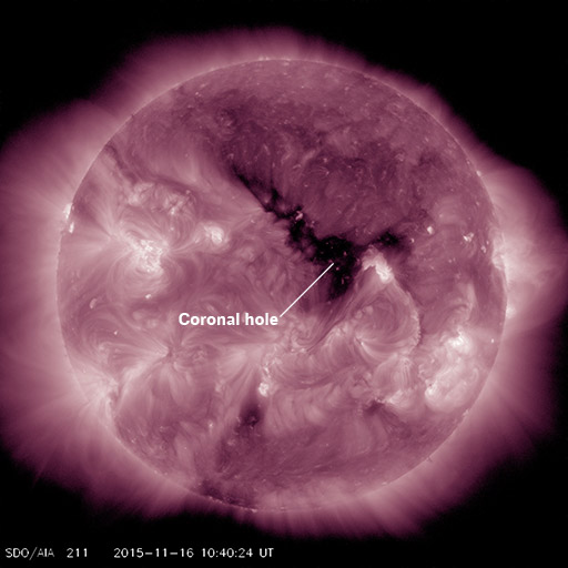 Image: A small coronal hole faces Earth as seen by NASA SDO.