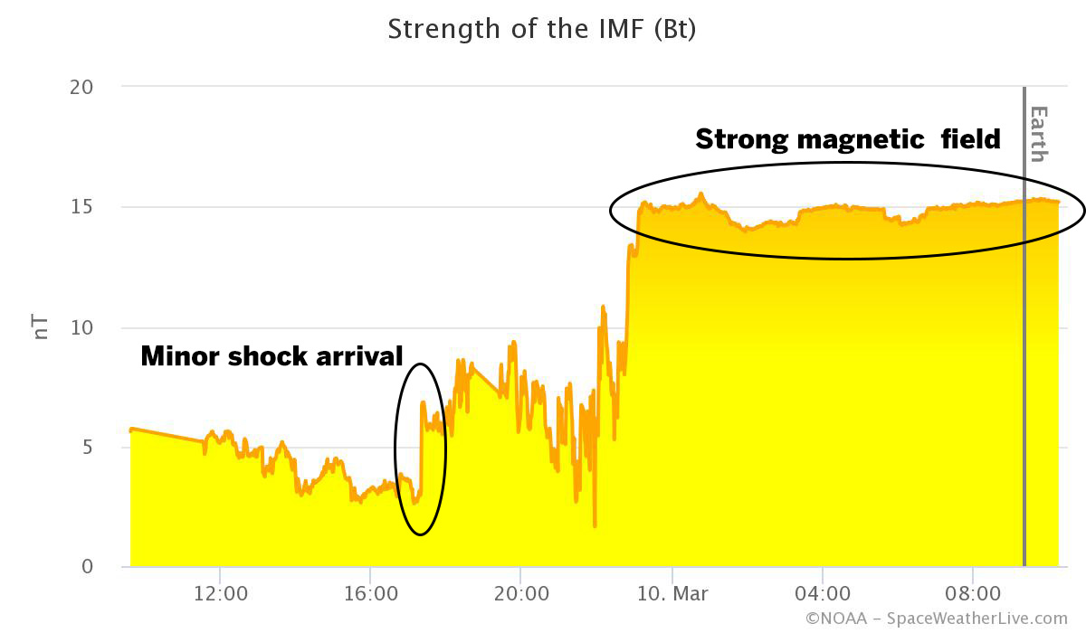 The coronal mass ejection that we discussed back on Wednesday arrived yesterday evening at Earth.