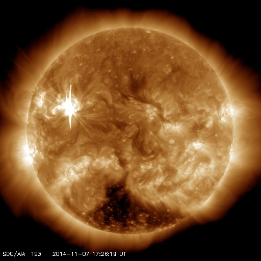 SUMMARY: X-ray Event exceeded X1 Begin Time: 2014 Nov 07 1653 UTC Maximum Time: 2014 Nov 07 1726 UTC End Time: 2014 Nov 07 1734 UTC X-ray Class: X1.6 Location: N15E38 NOAA Scale: R3 - Strong