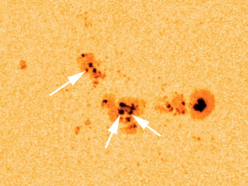 All the other sunspot regions on the disk are unremarkable and unlikely to produce strong solar flares. Any future solar flares will very likely be centered around sunspot region 2205.
