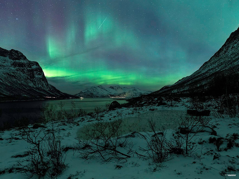 Auroral activity remains elevated as Earth remains under influence of coronal hole high speed stream effects. The direction of the IMF is occasionally drifiting south and aurora has often been filling the arctic skies during the past few days. Just take a look at this amazing image by Gibfoto from Norway. He even managed to capture a Geminid meteor on this shot!