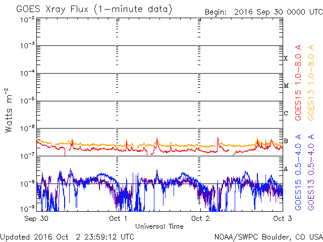 The operational data in the graph above has been modified to remove the scaling factor that has been applied by the Space Weather Prediction Center (SWPC). Because of the SWPC scaling factor in the operational data, flare indices for the operational data were reported as 42% smaller than for the science quality data. The scaling factor has also been removed from the solar flare list to reflect the true physical units.