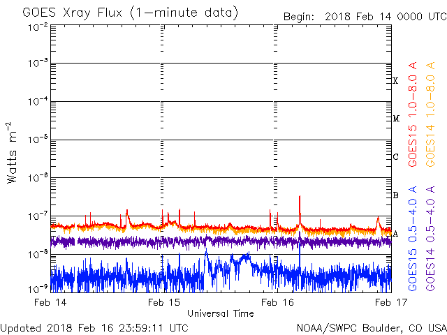 The operational data in the graph above has been modified to remove the scaling factor that has been applied by the Space Weather Prediction Center (SWPC). Because of the SWPC scaling factor in the operational data, flare indices for the operational data were reported as 42% smaller than for the science quality data. The scaling factor has also been removed from the solar flare list to reflect the true physical units.
