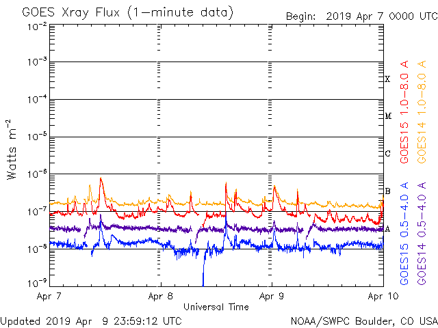 The operational data in the graph above has been modified to remove the scaling factor that has been applied by the Space Weather Prediction Center (SWPC). Because of the SWPC scaling factor in the operational data, flare indices for the operational data were reported as 42% smaller than for the science quality data. The scaling factor has also been removed from the solar flare list to reflect the true physical units.
