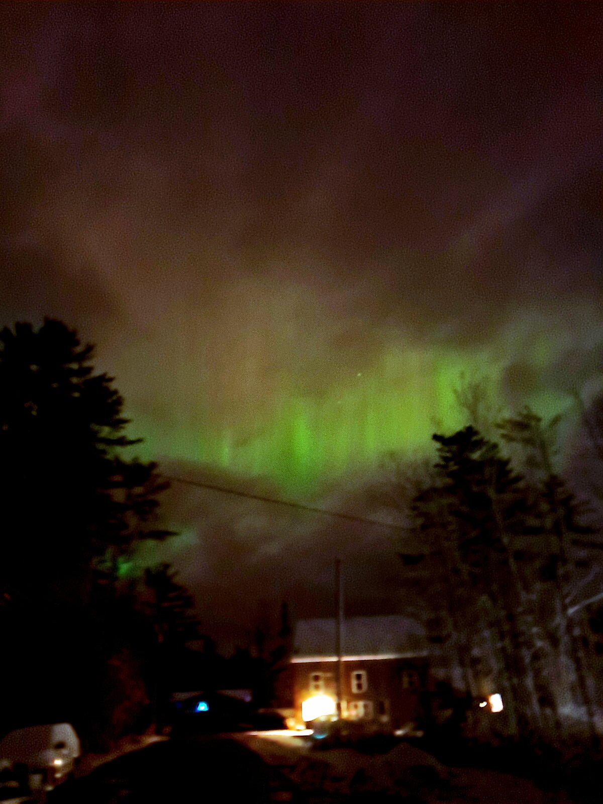 | Aurora visibility | Auroras seen through breaks in the clouds |