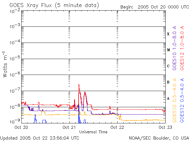 I dati operativi nel precedente grafico sono stati modificati per rimuovere il fattore di scala applicato dal Centro di Predizione Meteorologica Spaziale (SWPC). A causa del fattore di scala di SWPC nei dati operativi, gli indici di brillamento per i dati operativi sono segnalati come ridotti del 42%, rispetto ai dati di qualità scientifica. Il fattore di scala è inoltre stato ridotto dall'elenco dei brillamenti solari, per riflettere le unità fisiche reali.