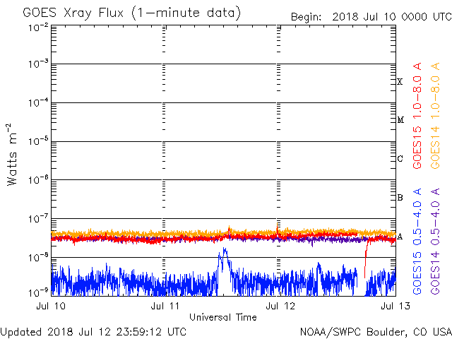 I dati operativi nel precedente grafico sono stati modificati per rimuovere il fattore di scala applicato dal Centro di Predizione Meteorologica Spaziale (SWPC). A causa del fattore di scala di SWPC nei dati operativi, gli indici di brillamento per i dati operativi sono segnalati come ridotti del 42%, rispetto ai dati di qualità scientifica. Il fattore di scala è inoltre stato ridotto dall'elenco dei brillamenti solari, per riflettere le unità fisiche reali.