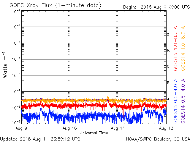 I dati operativi nel precedente grafico sono stati modificati per rimuovere il fattore di scala applicato dal Centro di Predizione Meteorologica Spaziale (SWPC). A causa del fattore di scala di SWPC nei dati operativi, gli indici di brillamento per i dati operativi sono segnalati come ridotti del 42%, rispetto ai dati di qualità scientifica. Il fattore di scala è inoltre stato ridotto dall'elenco dei brillamenti solari, per riflettere le unità fisiche reali.