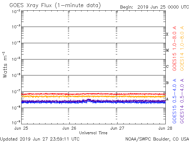 I dati operativi nel precedente grafico sono stati modificati per rimuovere il fattore di scala applicato dal Centro di Predizione Meteorologica Spaziale (SWPC). A causa del fattore di scala di SWPC nei dati operativi, gli indici di brillamento per i dati operativi sono segnalati come ridotti del 42%, rispetto ai dati di qualità scientifica. Il fattore di scala è inoltre stato ridotto dall'elenco dei brillamenti solari, per riflettere le unità fisiche reali.