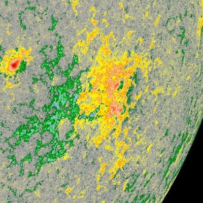 | Numero di macchie solari | Nuove regioni | Flusso di fondo | Flusso massimo | C | M |
