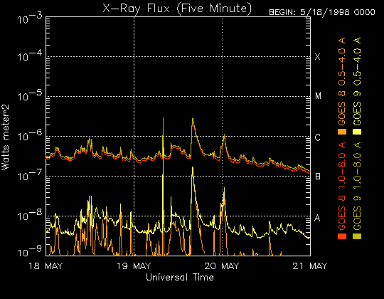 Dane operacyjne na powyższych wykresach zostały zmodyfikowane tak, aby usunąć współczynnik skalowania, które zostały dodane przez Space Weather Prediction Center (SWPC). Ponieważ przez skale współczynników SWPC w danych operacyjnych, indeks rozbłysków dla danych operacyjnych były o 42% mniejsze niż dane o jakości naukowej. Współczynnik skalowania został również usunięty z listy rozbłysków słonecznych by odzwierciedlić prawdziwe jednostki fizyczne.