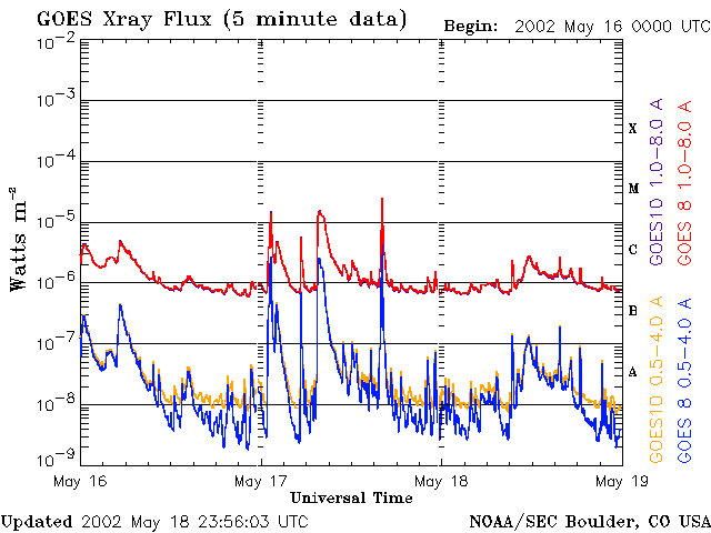 Оперативные данные выше были модифицированы, чтобы убрать масштабирующий фактор, который был применен SWPC (Центр предсказания космической погоды). Из-за этого фактора индексы вспышек в оперативных данных были занижены на 42% относительно научных данных. Масштабирующий фактор был так же убран из списка солнечных вспышек, чтобы отображать реальные величины.