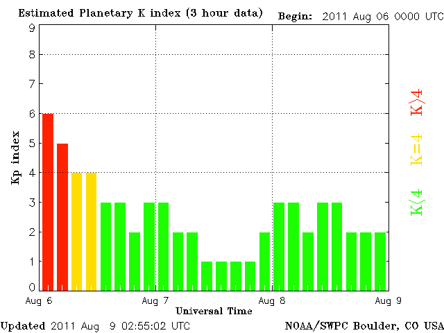 Официальный Kp-индекс от GFZ в Потсдаме, Германия