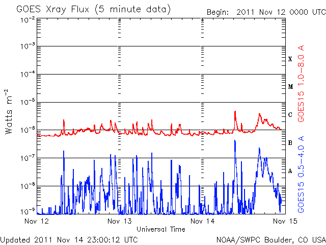 Оперативные данные выше были модифицированы, чтобы убрать масштабирующий фактор, который был применен SWPC (Центр предсказания космической погоды). Из-за этого фактора индексы вспышек в оперативных данных были занижены на 42% относительно научных данных. Масштабирующий фактор был так же убран из списка солнечных вспышек, чтобы отображать реальные величины.