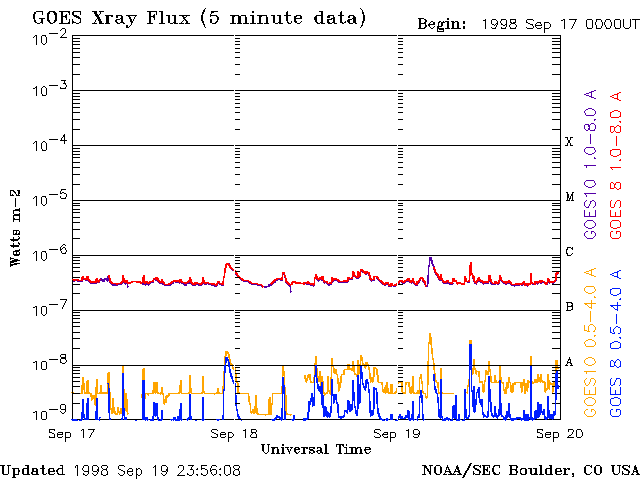 上圖中的操作數據已被修改,以刪除太空天氣預報中心(SWPC) 應用的比例因子。由於操作數據中的SWPC 比例因子,操作數據的耀斑指數報告比科學質量數據小 42%。比例因子也已從太陽耀斑清單中刪除,以反映真實的物理單位。