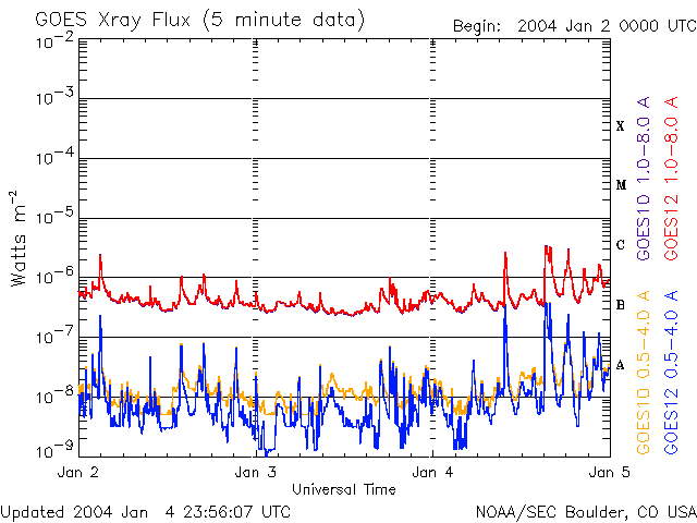 上圖中的操作數據已被修改,以刪除太空天氣預報中心(SWPC) 應用的比例因子。由於操作數據中的SWPC 比例因子,操作數據的耀斑指數報告比科學質量數據小 42%。比例因子也已從太陽耀斑清單中刪除,以反映真實的物理單位。