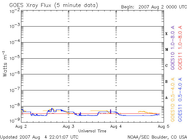 上圖中的操作數據已被修改,以刪除太空天氣預報中心(SWPC) 應用的比例因子。由於操作數據中的SWPC 比例因子,操作數據的耀斑指數報告比科學質量數據小 42%。比例因子也已從太陽耀斑清單中刪除,以反映真實的物理單位。